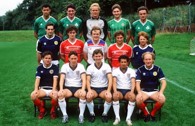 Así aparecen (atrás, desde la izquierda): Paul McGrath (Irlanda), Frank Stapleton (Irlanda), Gary Bailey (Inglaterra), Norman Whiteside (Irlanda del Norte) y Kevin Moran (Irlanda).
