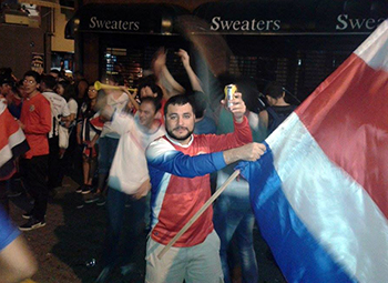 “Venciendo a Estados Unidos en San José, Costa Rica se aseguraba el pasaje al Mundial 2002, pero mis amigos y yo ya teníamos compromisos. Ronny se escapó del trabajo, Andrés rompió una cita y yo falté a un examen en la universidad... ¡Luego tuve que reponer con un dictamen médico! En el estadio llovió desde las 3 de la tarde hasta las 10 de la noche, nos mojamos de pies a cabeza; sobre el final, la TV nos enfocaba y teníamos que taparnos con las banderas para que no nos descubrieran. Al final lloramos juntos cantando la Patriótica Costarricense, celebrando el pase al Mundial”, cuenta